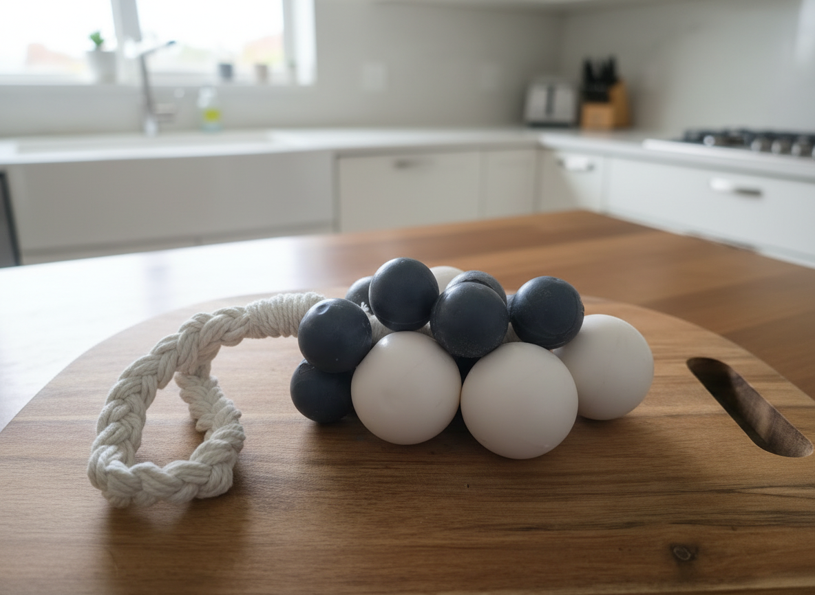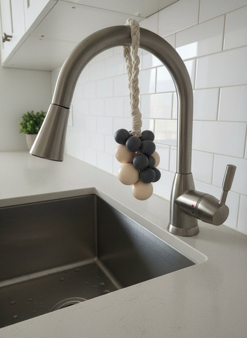 Crafted for simple, everyday use, this rustic hanging vine soap ties to your kitchen or bathroom faucet. Just wet your hands and rub them along the bar for an easy, no-mess wash. Shaped and decorated like a grapevine, its beautiful shades of white and blue, fragranced with Brazilian Crush 40 (black plums, amber, jasmine, and vanilla) bring a soft, natural charm to any sink.”