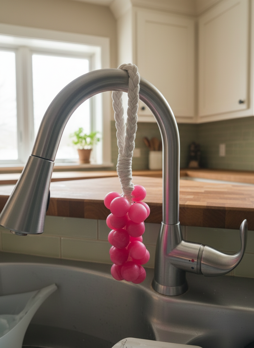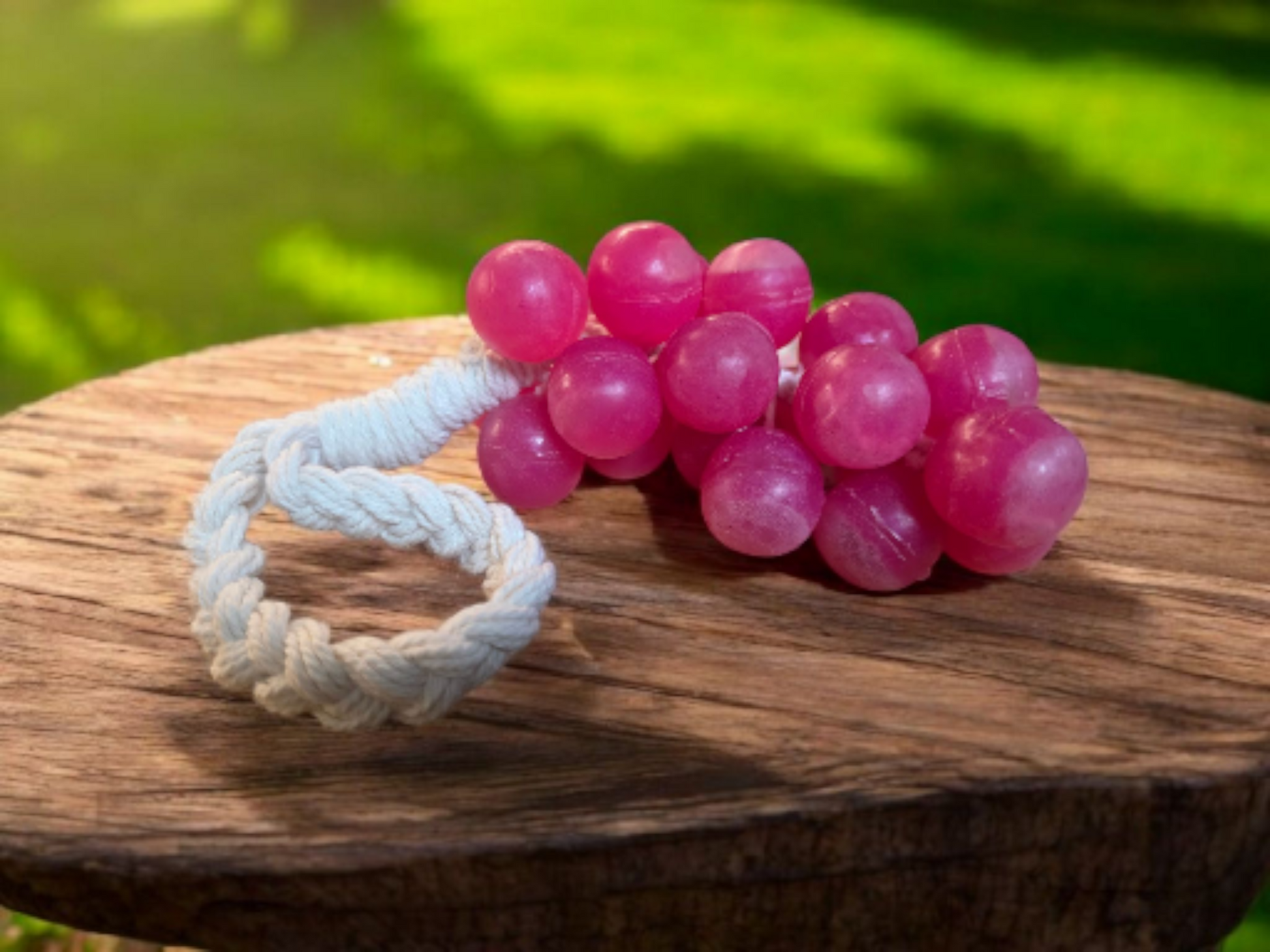 Crafted for simple, everyday use, this rustic hanging vine soap ties to your kitchen or bathroom faucet. Just wet your hands and rub them along the bar for an easy, no-mess wash. Shaped and decorated like a grapevine, its beautiful shade of magenta, fragranced with Thousand Wishes will bring charm to any sink.”